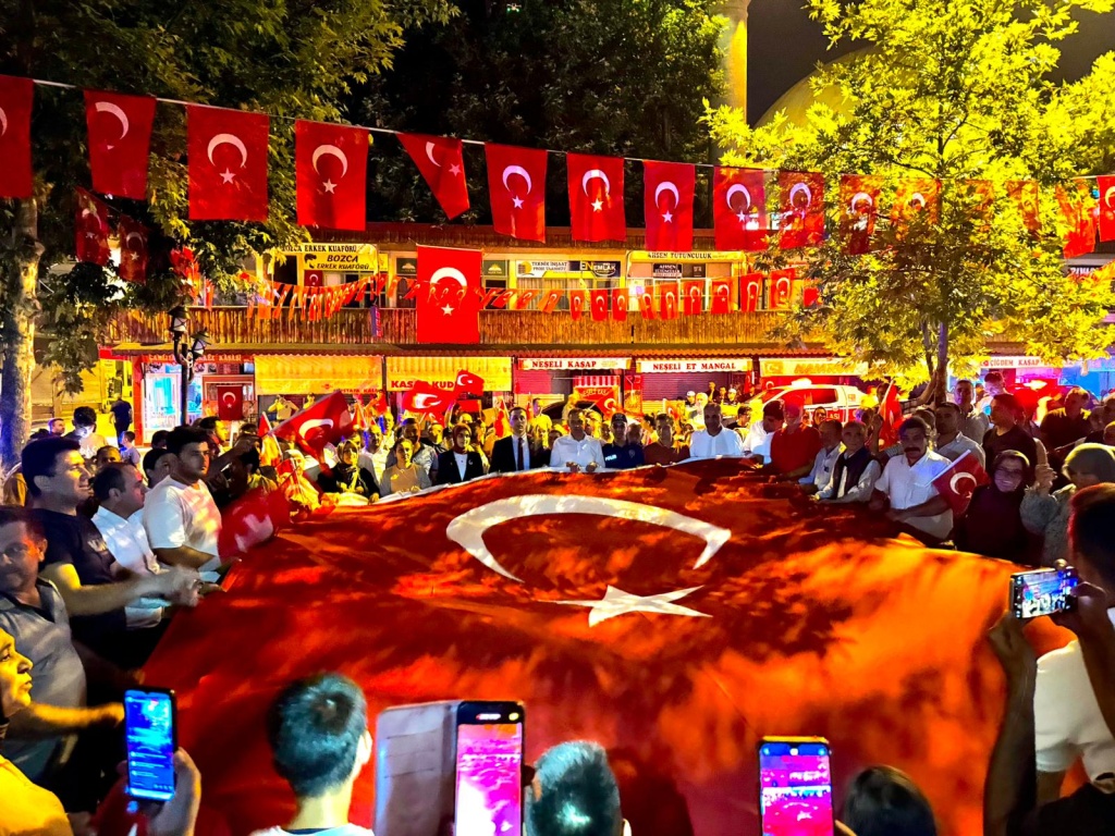15 Temmuz Demokrasi ve Milli Birlik Günü Anma Programı, Çarşı Merkezinde günün anlam ve önemini belirten etkinliklerin gerçekleştirilmesi, saat 00:13’de tüm camilerimizden selâların okunması ve Demokrasi Nöbeti devam etti.