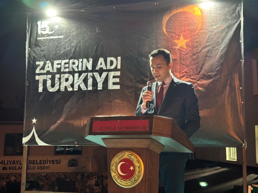 15 Temmuz Demokrasi ve Milli Birlik Günü kapsamında planlanan "Zaferin Adı Türkiye" Demokrasi ve Milli Birlik Yürüyüşü Kaymakamımız Sayın Veli Avcı, eşi Dr. Asya Avcı Hanımefendi, Belediye Başkanı Mehmet Fatih Sofu, İlçe Protokolü ve vatandaşlarımız katılımı ile kurumumuz bahçesinden başlayarak Çamlıyayla Belediyesi Hizmet Binası Önünde son buldu.