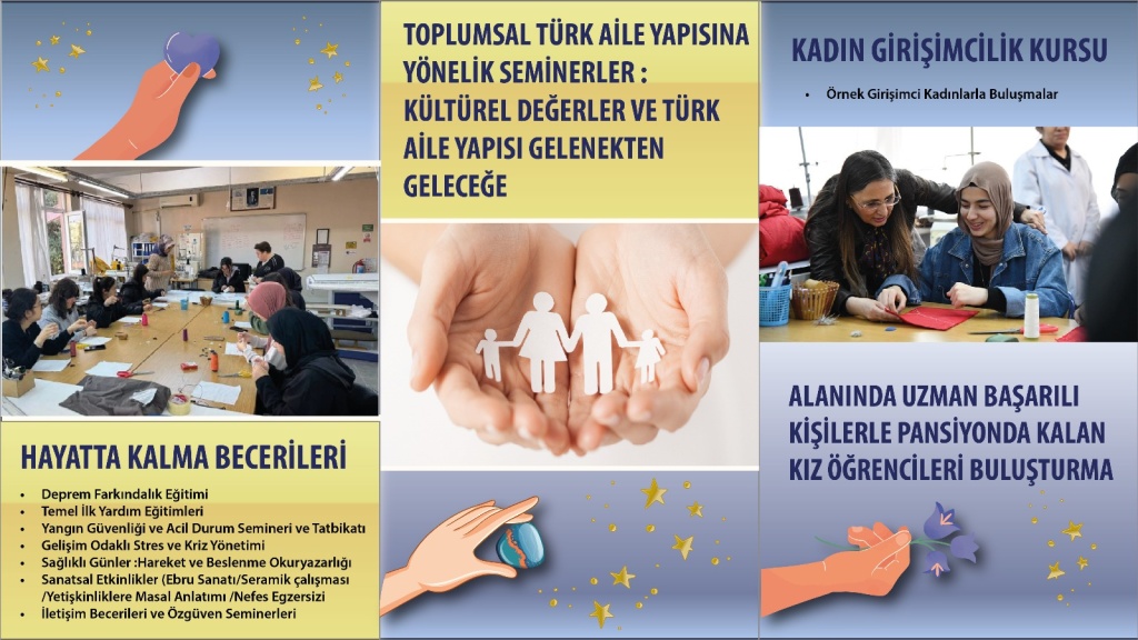 - Aile yapısı ve toplumsal değerler gibi temalarda kurslar, atölyeler ve seminerler yer almaktadır.